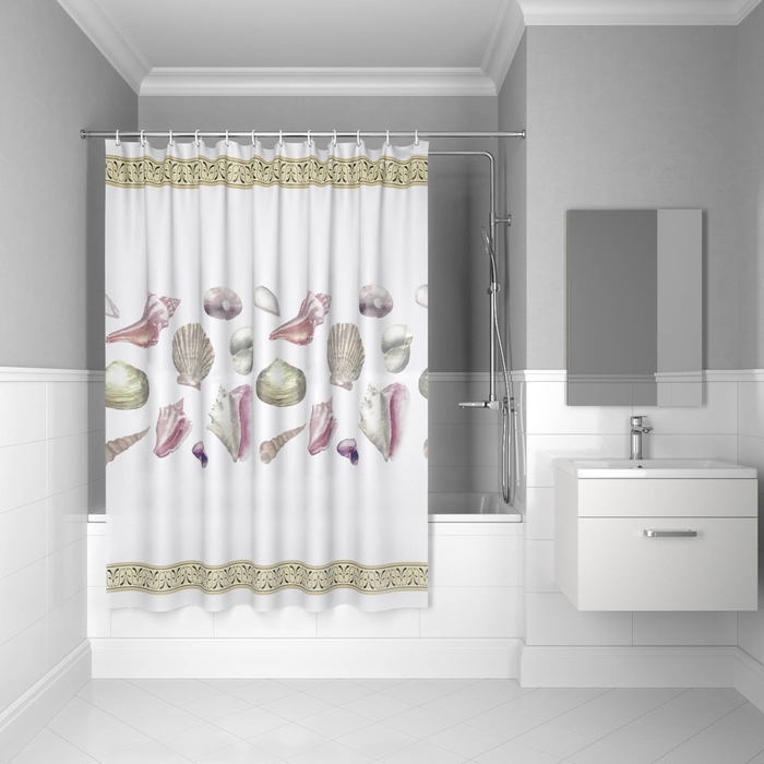 Штора для ванной комнаты, коллекция Promo, материал - PEVA, толщина - 0,09 мм, размер - 180*180 см. Материал люверсов - Сталь хромированная, без колец в комплекте. Упаковка - Картонная лента и подвес.