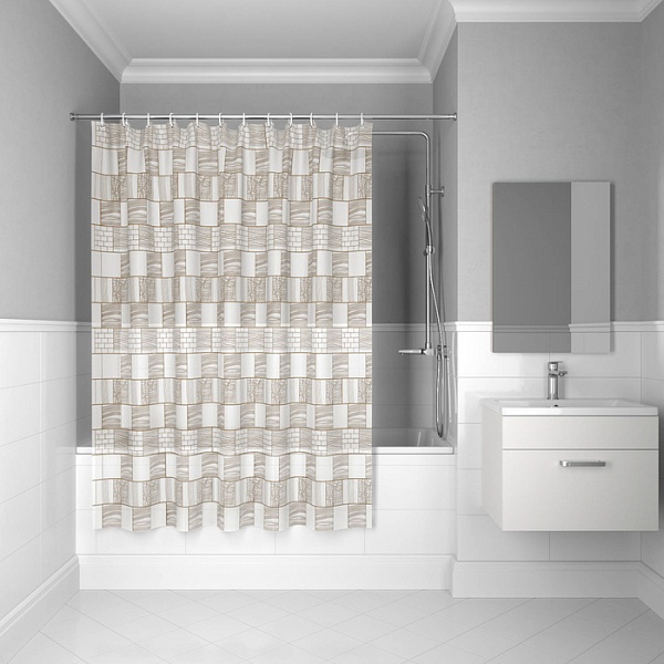 Полупрозрачная матовая штора для ванной с урбанистическим принтом. Изготовлена из плотного гладкого материала PEVA с приятным на ощупь покрытием soft touch.