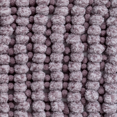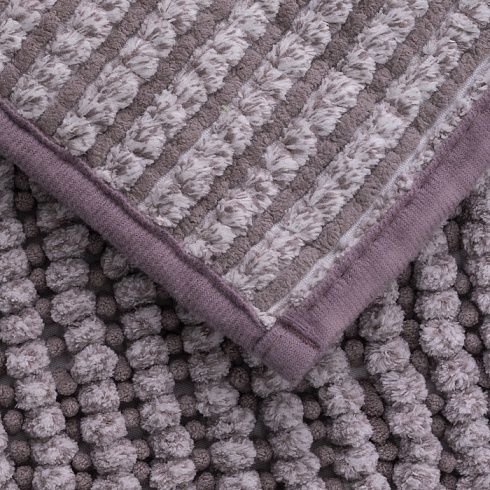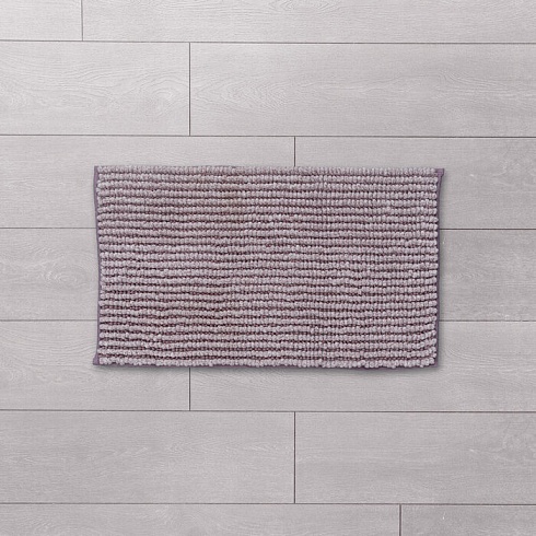 Коврик для ванной цвета сирени с невысоким пальчиковым ворсом (1,5 см), мягкий и очень приятный на ощупь. Ворс из микрофибры отлично держит форму, легко чистится и быстро сохнет. За счет небольшого размера коврик подойдет для ванной и туалета.