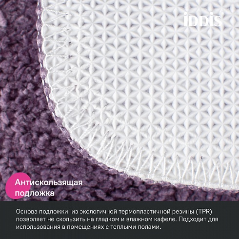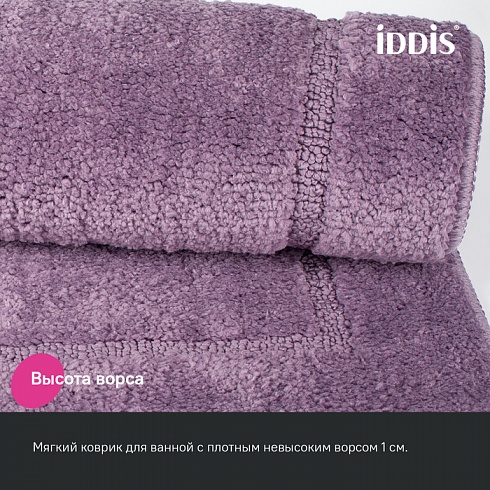 Мягкий коврик для ванной красивого фиолетового цвета с плотным невысоким ворсом (1 см), очень приятный на ощупь. Ворс из микрофибры отлично держит форму, легко чистится и быстро сохнет. Коврик подойдет для ванной и туалета.