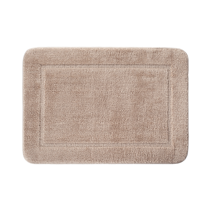 Мягкий коврик для ванной стильного светло-коричневого цвета с плотным невысоким ворсом (1 см), очень приятный на ощупь. Ворс из микрофибры отлично держит форму, легко чистится и быстро сохнет. Коврик подойдет для ванной и туалета.