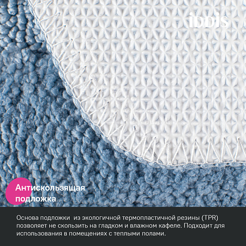 • Этот коврик в ванную противоскользящий: основа из экологичной термопластичной резины (TPR) позволяет не скользить на гладком и влажном кафеле. Подходит для использования в помещениях с теплыми полами.