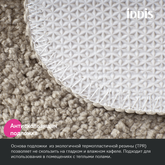 • Коврики в ванную противоскользящие: основа из экологичной термопластичной резины (TPR) позволяет не скользить на гладком и влажном кафеле. Подходят для использования в помещениях с теплыми полами.