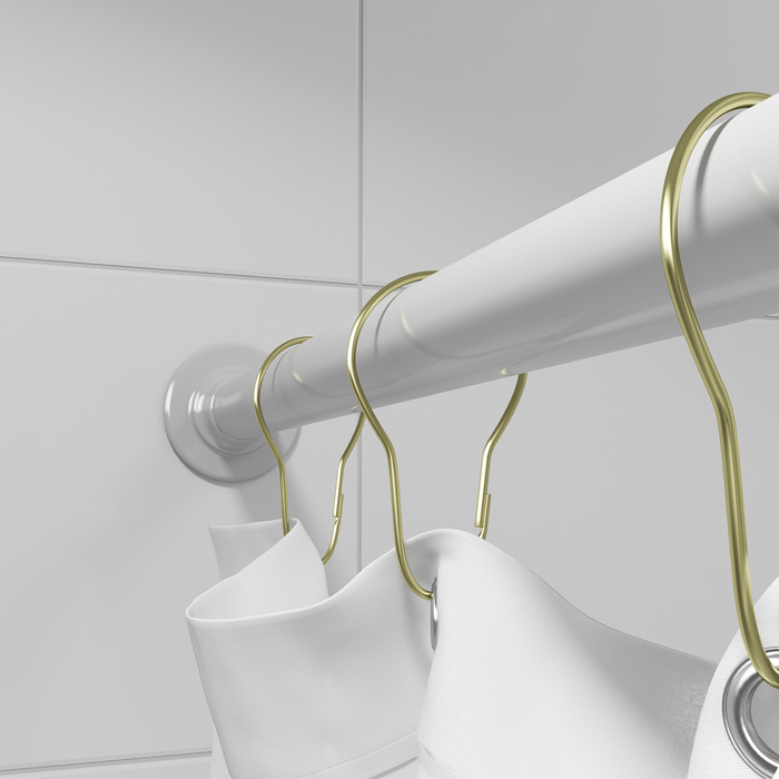 Набор фигурных колец для комплектации шторы в ванную комнату гармонично впишется в любой современный и классический интерьер. Кольца изготовлены из сплава металлов с благородным золотым покрытием, благодаря чему они подойдут к шторам в любой цветовой гамме. Прочная металлическая основа колец, несмотря на изящный внешний вид, выдержит текстиль из любых материалов, в том числе тяжелые шторы. В комплекте 12 колец.