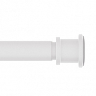 Карниз для шторы в ванную комнату универсального белого цвета регулируется по длине от 110 до 200 см благодаря телескопической конструкции.