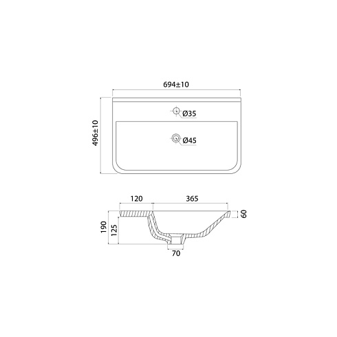 Керамический умывальник с большой вместительной чашей, удобный для гигиенических и хозяйственных нужд. Имеет встроенный перелив, который защитит от случайного затопления. Предназначен для мебельных тумб IDDIS® из коллекции Cloud X шириной 70 см.