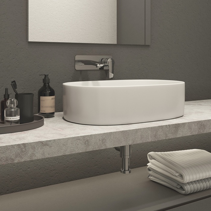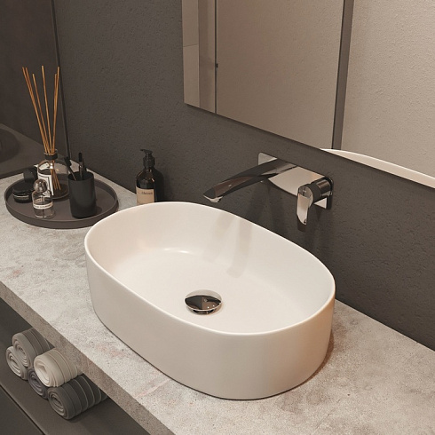 Округлые формы и удлиненная чаша большой глубины делают накладной умывальник Ray стильным акцентом интерьера ванной и при этом практичным. Идеальное решение для небольшой узкой столешницы: умывальник компактный по ширине, но глубокий и вместительный, высокие бортики защищают от брызг. Можно собрать готовое решение от IDDIS® в одном цвете: накладной умывальник, смеситель, сифон и выпуск, идеально совпадающие по тону. Смеситель нужно подбирать с учетом высоты чаши.