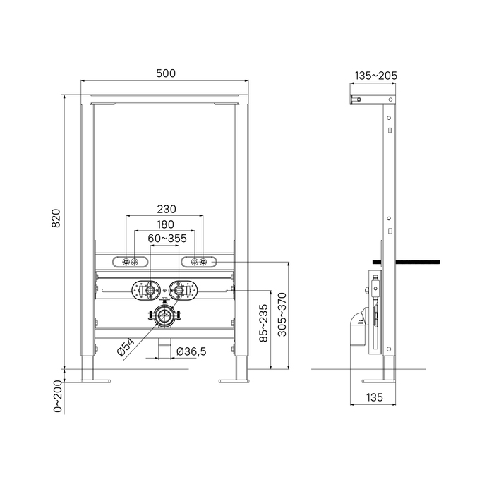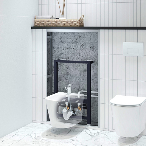 Инсталляция предназначена для крепления подвесного или напольного биде. Регулируется по высоте (0-200 мм) и глубине (до 70 мм), что позволяет удобно подстроить ее под условия конкретного санузла. Имеет все необходимое для простого и быстрого монтажа.