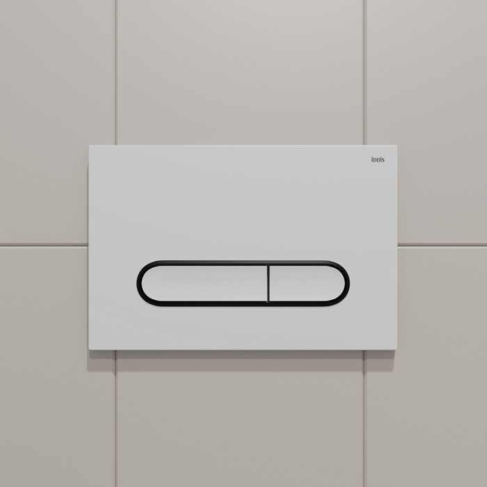 Белая клавиша IDDIS® Unifix составит базовый комплект с подвесной сантехникой – подходит ко всем механическим инсталляциям IDDIS®, кроме инсталляции Neofix в модификации, продававшейся до 2014 года (см. на фото). Черный контур овальных кнопок оригинально играет на контрастах, превращая функциональный продукт в стильный аксессуар. Плоская и эстетичная клавиша смыва займет пространство размером не более ежедневника (24,5 на 16,5 см). Она легко монтируется и снимается для удобного доступа к крану открытия-закрытия воды и обслуживания арматуры. Модель представлена в нескольких цветовых сочетаниях.