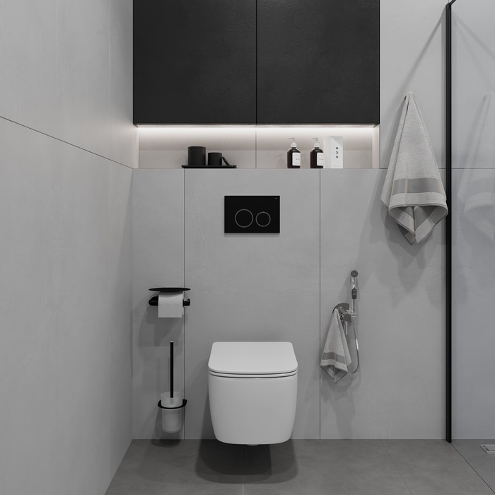 Черная клавиша IDDIS® Unifix составит базовый комплект с подвесной сантехникой – подходит ко всем механическим инсталляциям IDDIS®, кроме инсталляции Neofix в модификации, продававшейся до 2014 года (см. на фото). Хромированный контур круглых кнопок выступает ярким акцентом, превращая функциональный продукт в стильный аксессуар. Плоская и эстетичная клавиша смыва займет пространство размером не более ежедневника (24,5 на 16,5 см). Она легко монтируется и снимается для удобного доступа к крану открытия-закрытия воды и обслуживания арматуры. Модель доступна в нескольких цветовых сочетаниях.