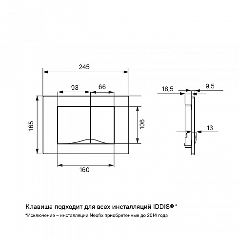 Белая клавиша IDDIS® Unifix – модная новинка, которая составит базовый комплект с инсталляцией IDDIS®. Подходит ко всем инсталляциям IDDIS®, кроме инсталляции Neofix в модификации, продававшейся до 2014 года (см. на фото).
