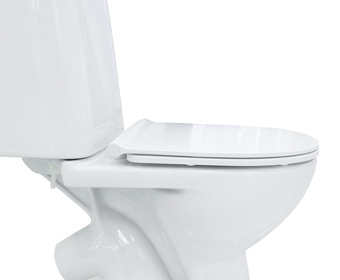 Унитаз-компакт Atlant с тонким сиденьем из дюропласта с Soft Close и Easy Fix, двухуровневая водосливная арматура, кнопка смыва 48 мм, косой выпуск, высококачественный санфарфор, покрытие PearlShine. Упаковка: картонная коробка.