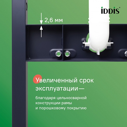 • Надежная цельная стальная рама инсталляции имеет возможность регулировки по высоте и подходит для монтажа в любых, в том числе узких, пространствах.