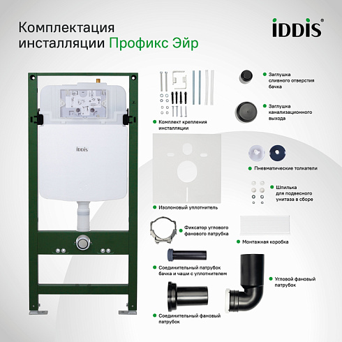 Готовый комплект сантехники 3 в 1 для обустройства туалетной комнаты. Состоит из подвесного унитаза Bild Q (BIQRNSEi25), пневматической инсталляции Profix Air (PRA0000i32) с двухуровневой арматурой и клавиши смыва в цвете матовый хром (UNI80M0i77). В комплекте есть всё необходимое для установки. Так выгоднее и удобнее, чем покупать всё по отдельности.
