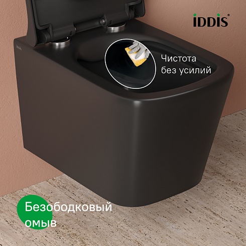 • Черное сиденье IDDIS® из матового дюропласта внешне напоминает керамику. Благодаря своим конструктивным особенностям изделие устойчиво к царапинам, его легче поддерживать в чистоте.