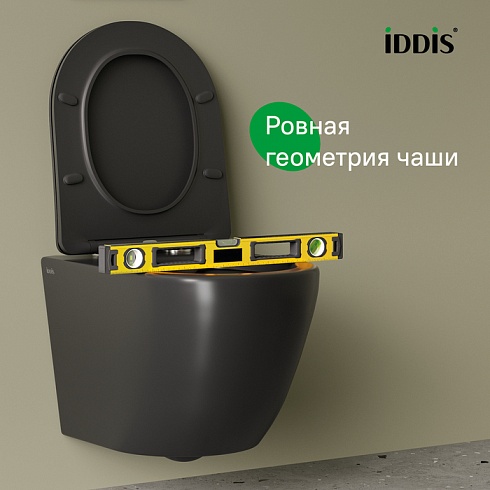 • Черное сиденье IDDIS® из матового дюропласта внешне напоминает керамику. Благодаря своим конструктивным особенностям изделие устойчиво к царапинам, его легче поддерживать в чистоте.