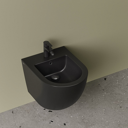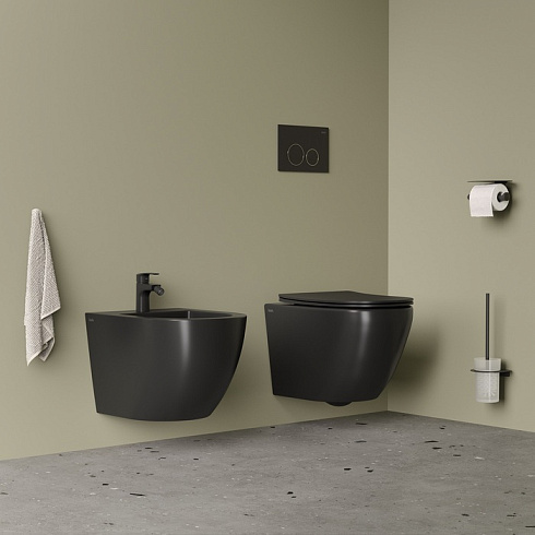 Комплект подвесной керамики Blanco в трендовом матовом черном цвете: унитаз и биде в трендовых округлых формах. Позволит оформить ванную в едином стиле с комфортом и элегантностью. Удобное продуманное решение и выгодная покупка.