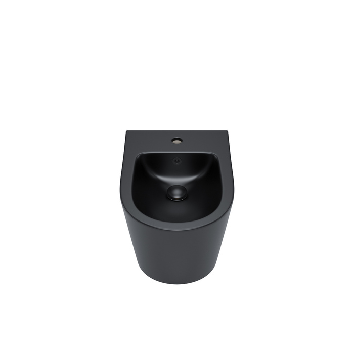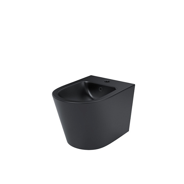 Подвесное биде Calipso в трендовом черном матовом цвете – строгая геометрия прямых линий в сочетании с округлыми формами чаши, что создает современный стильный дизайн. Плотное прилегание к стене позволяет вписать его даже в небольшой санузел, а скрытые крепления создают аккуратный внешний вид и упрощают уборку.
