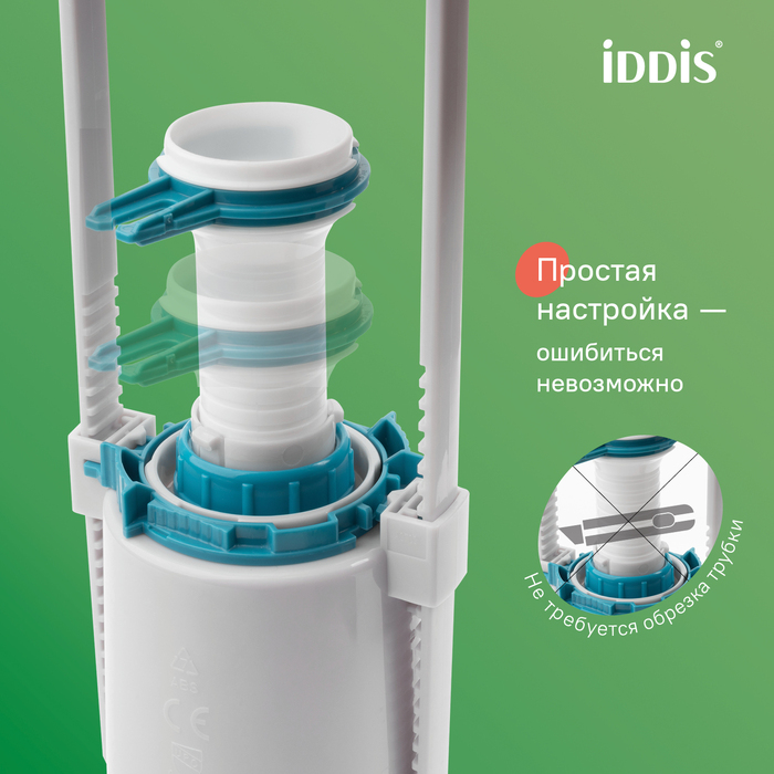 Работает при любом качестве воды. Фильтр грубой очистки впускного клапана задерживает мельчайшие частицы грязи и песка. Можно промыть, не вынимая из бачка.