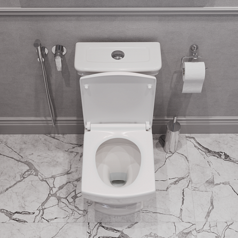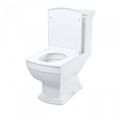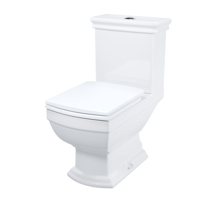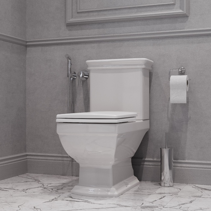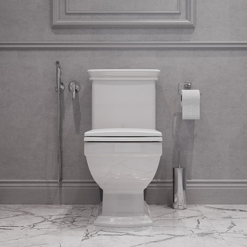 Классический большой унитаз Oldie в стиле ретро с выраженными декоративными деталями на крышке бачка и пьедестале – украшение и центр притяжения интерьера любой классической ванной.