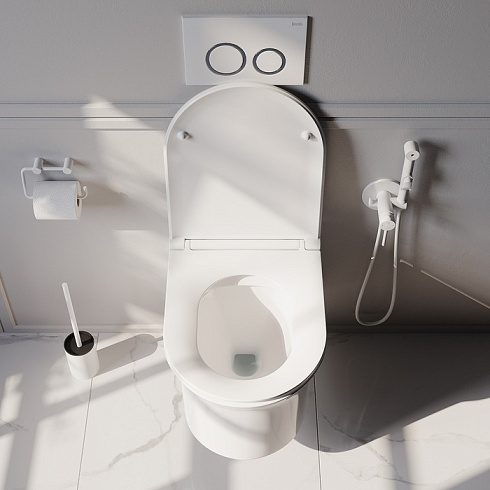 Безободковая конструкция чаши и сиденье с микролифтом делают унитаз гигиеничным и удобным. Сиденье из дюропласта на ощупь напоминает керамику, устойчиво к царапинам, надолго остается белоснежным и чистым благодаря антибактериальным свойствам материала.