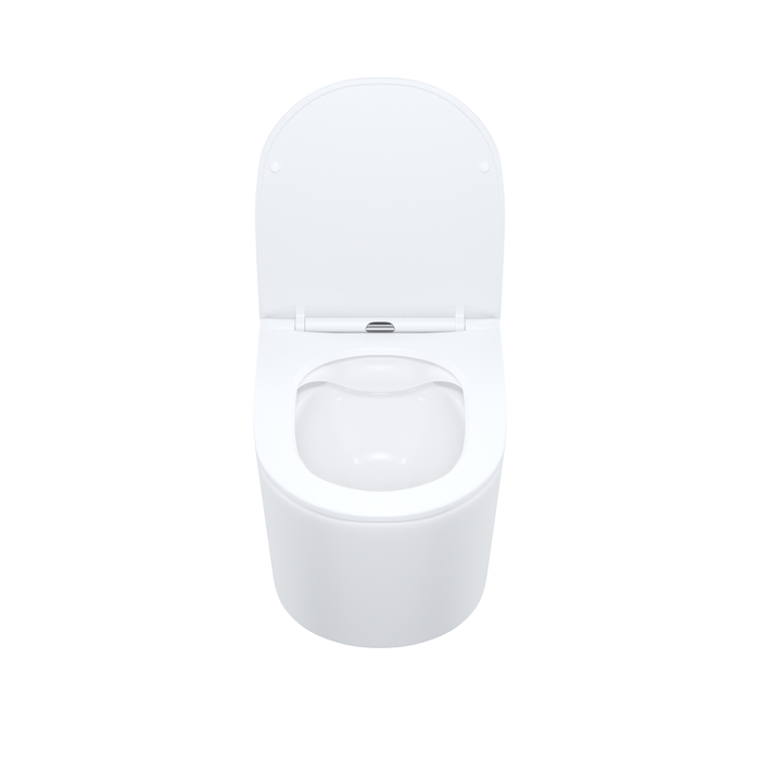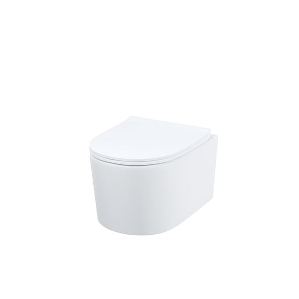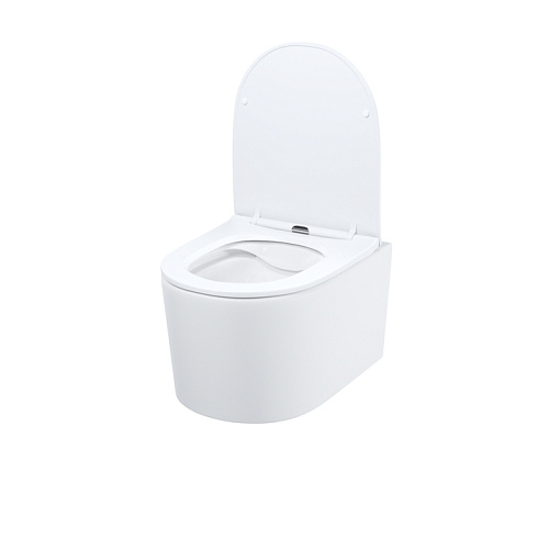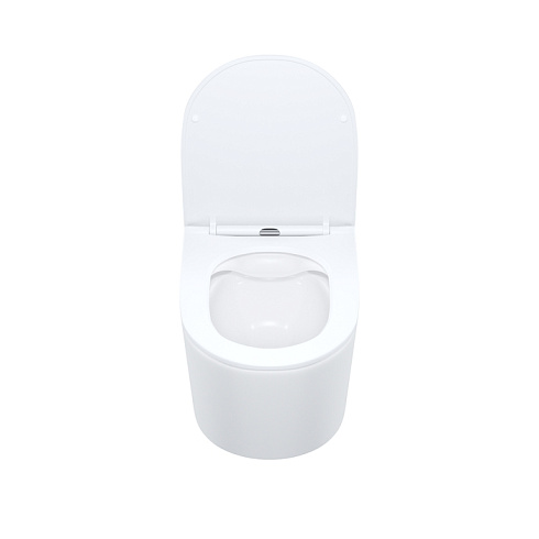 Унитаз подвесной безободковый с сиденьем из дюропласта с EasyFix и SoftClose. Округлая форма чаши. Крепления в комплекте. Размер 490х365х370 мм (ДхШхВ). Упаковка: картонная коробка.