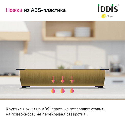 • Идеально подходит для моек IDDIS® с шириной чаши 350-425 мм, глубиной от 110 мм и длиной от 240 мм. Отлично сочетается по цвету с золотыми смесителями и мойкой.