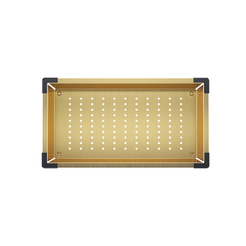 Стильный полезный аксессуар – коландер в трендовом цвете матового золота – дает новые возможности для интересных дизайнерских решений на кухне. Отверстия на дне позволяют использовать его как дополнительную рабочую поверхность: для разморозки и хранения продуктов, сушки посуды и столовых приборов, мытья овощей и фруктов.