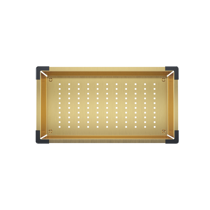 Стильный полезный аксессуар – коландер в трендовом цвете матового золота – дает новые возможности для интересных дизайнерских решений на кухне. Отверстия на дне позволяют использовать его как дополнительную рабочую поверхность: для разморозки и хранения продуктов, сушки посуды и столовых приборов, мытья овощей и фруктов.