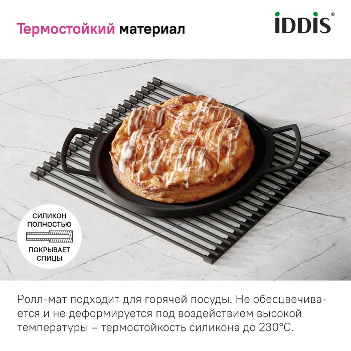 • Легко чистится, можно мыть в посудомоечной машине. Вода скатывается с ролл-мата, не оставляя следов за счет круглого сечения спиц.
