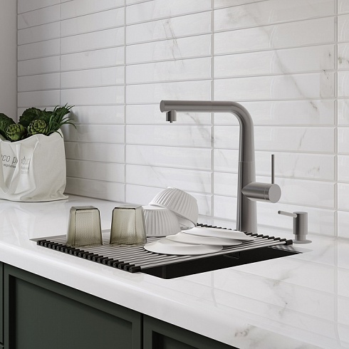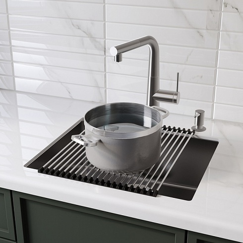 • Универсальный цвет подойдет к мойке любого цвета и материала, подстольного и врезного монтажа. Идеально сочетается с большинством смесителей и дозаторов.