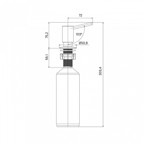 • Легко наполнять – верхняя часть дозатора снимается без резьбы и удерживается уплотнительным кольцом.