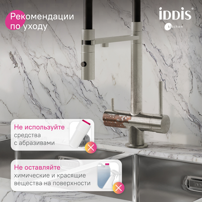 Профессиональный смеситель для кухни Ace в сатиновом оттенке с черным гибким изливом и отдельным каналом для фильтрованной воды. Продуманный и функциональный, он успешно справляется с повседневными задачами на кухне.