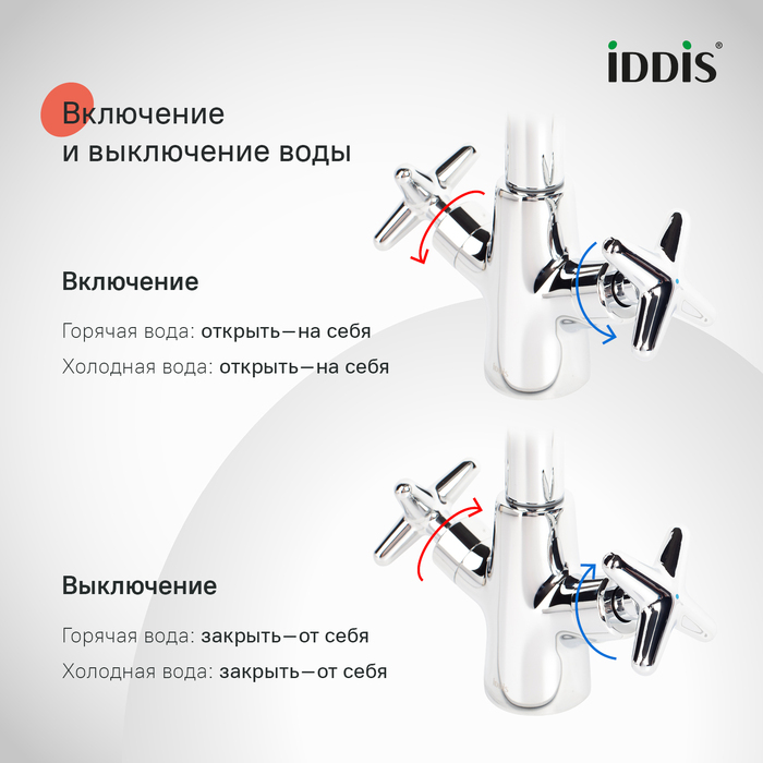 • Смеситель IDDIS® прослужит долго благодаря надежному корпусу из прочной латуни, стойкому к коррозии, резким изменениям давления и перепадам температуры воды.