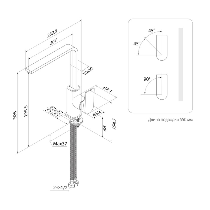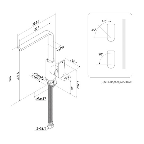 - Тип излива Поворотный L