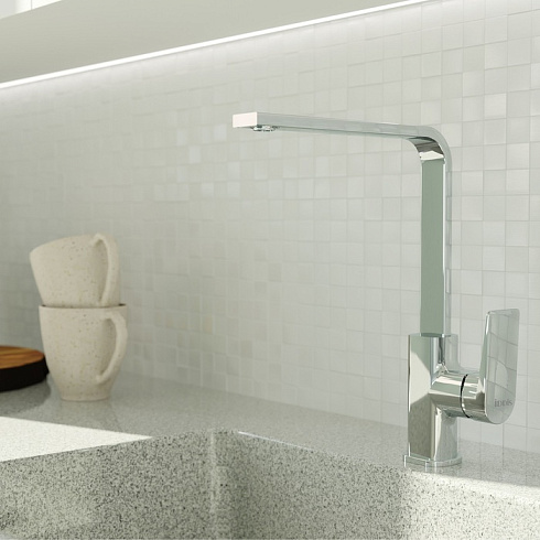 Смеситель для кухни Bridge — это чистые геометрические формы, которые отлично дополнят современный интерьер. Может быть установлен как на мойку, так и на столешницу. Благодаря поворотному изливу пользоваться им удобно на любой кухонной мойке.