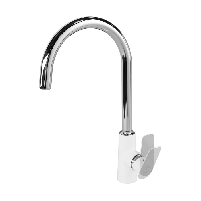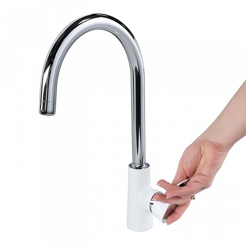 Смеситель для кухни из коллекции Cloud – воплощение легкости и простоты. Игра двух цветов — белого и хромированного — создает утонченный и стильный продукт, который подойдет к интерьеру в современном и классическом стиле. Высокий излив (281 мм) поворачивается на 360 градусов, благодаря чему им удобно пользоваться на любой кухонной мойке. В комплекте гибкая подводка и крепеж.