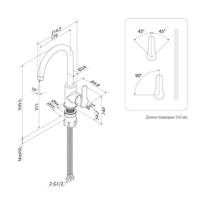 - Тип излива Поворотный J