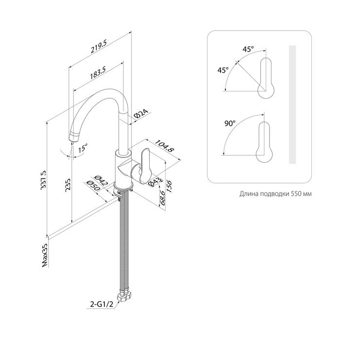 - Тип излива Поворотный J