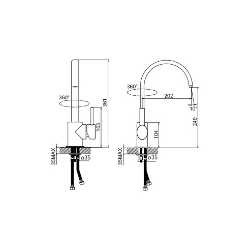 Высота излива (мм) 249