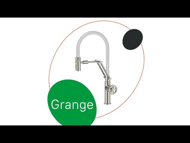 Смеситель для кухни Grange с гибким изливом в ярком индустриальном дизайне и красивом цветовом сочетании сатина и белого. Ручка-шестеренка скрывает привычный однозахватный механизм управления.