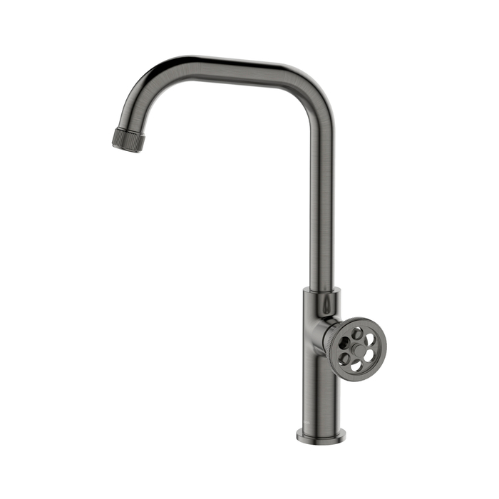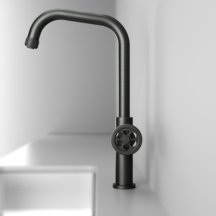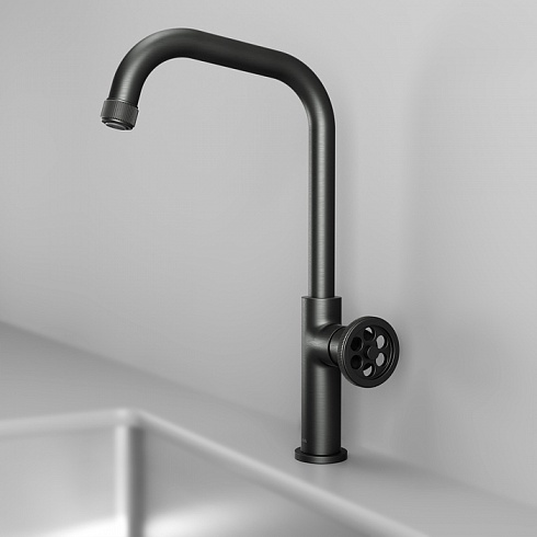 Смеситель для кухни Grange в стильном цвете графит имеет запоминающийся индустриальный дизайн и прекрасно дополнит интерьер в трендовом стиле лофт. Может быть установлен и на мойку, и на столешницу.