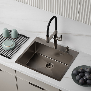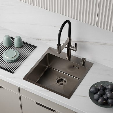 Профессиональный смеситель для кухни Ikon в чёрном цвете с гибким изливом и отдельным каналом для фильтрованной воды. Современный, продуманный и функциональный, он успешно справляется с повседневными задачами на кухне.
