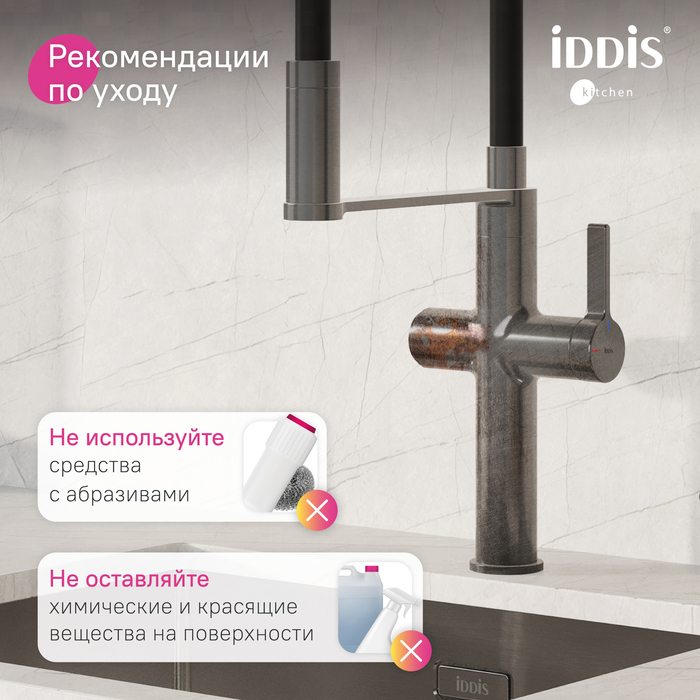 • Излив из термостойкого силикона просто содержать в чистоте за счёт гладкости и стойкости к грибку. Он приятен на ощупь и моется обычным средством.