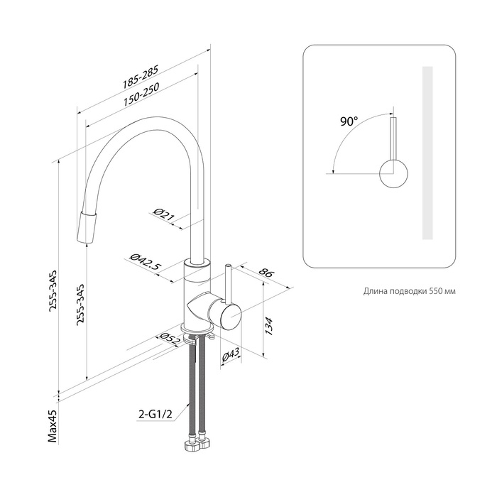 - Тип излива Гибкий