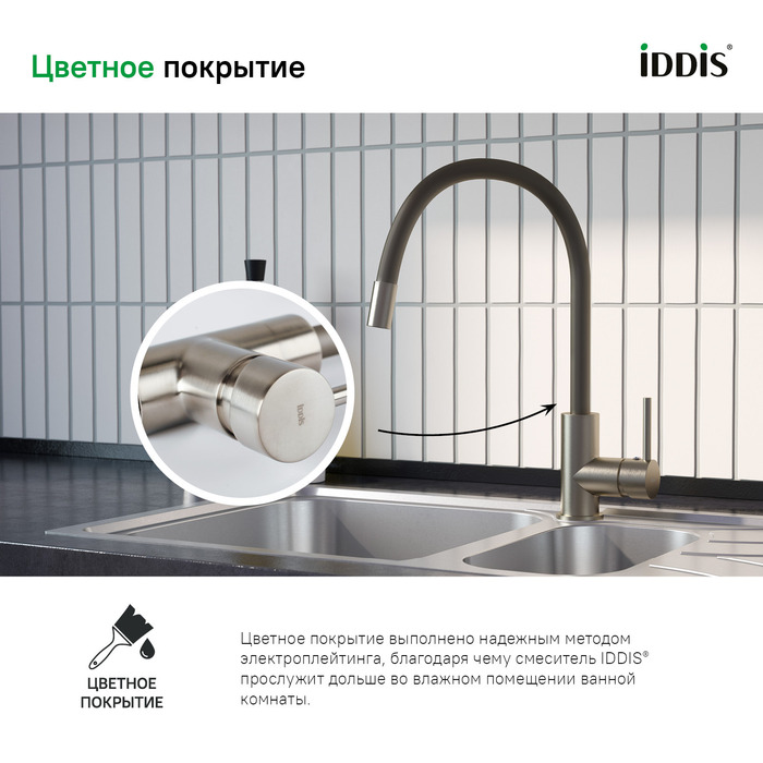 • Цвет смесителя отличается от оттенка стальной сатиновой мойки.