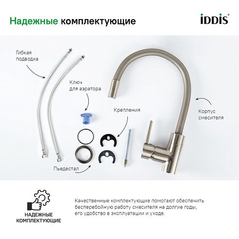 • Приятный на ощупь излив из прочного эластичного силикона легко очищается от загрязнений, ржавчины и извести.