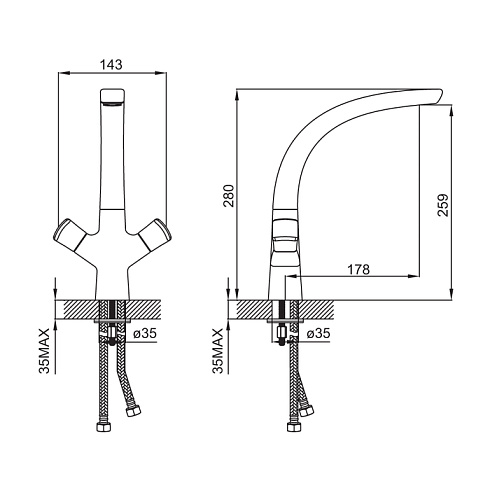 Смеситель для кухни IDDIS® изготовлен из высококачественной первичной латуни, прочной, безопасной и стойкой к коррозии. Инновационные технологии литья и обработки латуни, а также увеличенная толщина стенок смесителя обеспечивают его стойкость к перепадам давления и температур.