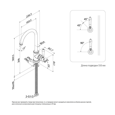 • Угол открывания ручки – 90 градусов, на себя; может отличаться в зависимости от партии.