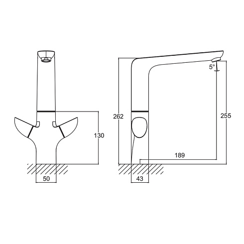 - Тип излива Поворотный L